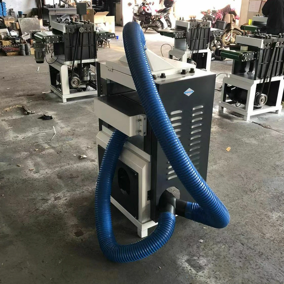 Woodworking double-sided press planer is a double-motor, high-speed double-sided press planer, high efficiency, its advantages: three in and two out structure, three feeding sticks, two out sticks, to increase the grip on the wood, to eliminate the gnawing head gnawing tail; fine grinding cast iron worktable, good stability, extra-long table, up to 860mm; table can be adjusted and with lifting scale, control the amount of planing under the table; the machine is equipped with a dust-absorbing system, the working environment Cleaner working environment.