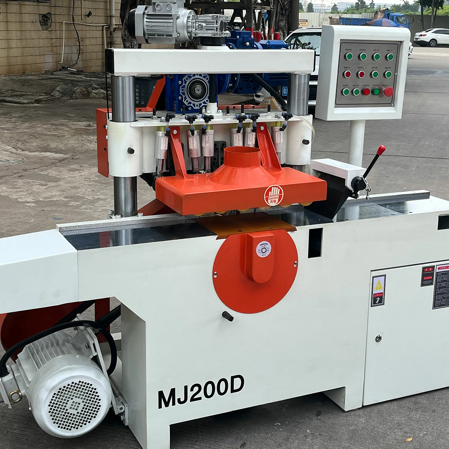 Square wood multi-blade rip saw is mainly used for sawing square wood into multi-standard square pieces, with advantage of large processing diameter, smooth feeding, no burning saw blade, small sawing road, high safety, smooth sawing surface and yield rate . It is the most ideal woodworking machinery for processing finger joints, joinery boards, packaging boards, etc. It can be changed according to the thickness of the sheet you want to saw, and the different sheets can be sawed, and the length and length of materials can be processed. Poplar, pine, eucalyptus, fir, green steel and other hardwoods.