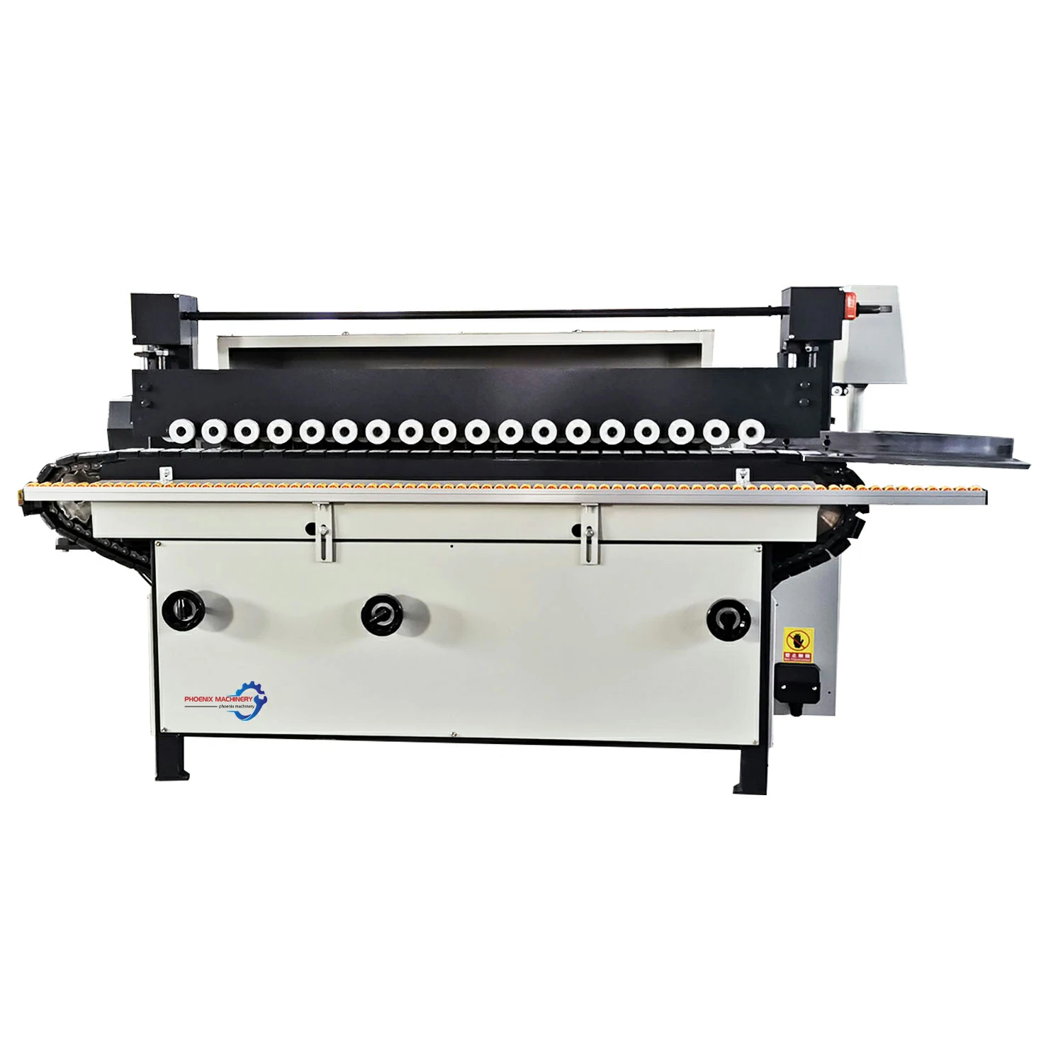Automatic side polishing machine, the model of the hair roller can be automatically adjusted up and down, mainly for the side of the wood products embryo sanding and primer sanding, applicable to a variety of wood panels, composite boards, density boards, veneer boards and other materials, can be used for wood lines, wood flowers, coat racks, Roman columns, photo frames, toilet seats and other shaped plane wood products sanding and polishing.