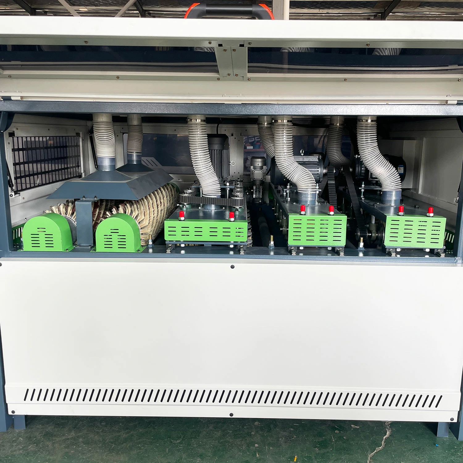 1、This equipment uses sandcloth strips, sisal hemp, and abrasive rollers as abrasives to polish the sharp edges, surface burrs, and painted edges of the workpiece.