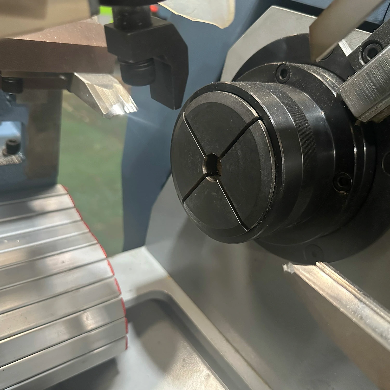 Customer options: 1. Powered tailstock (standard tailstock without power); 2. Saw blade for cutting wood (standard is a cutting blade model).